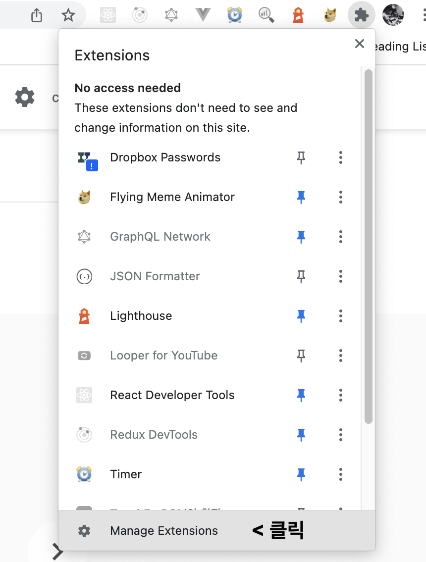1. Manage Extensions 클릭