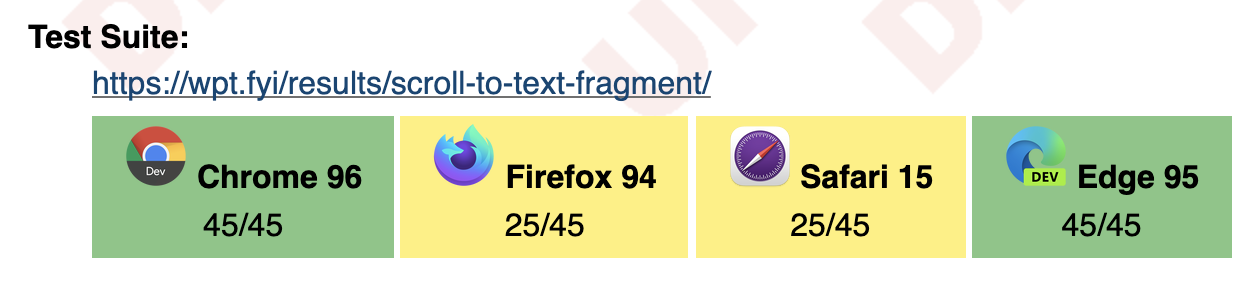 - Text Fragment는 웹 문서 내의 정확한 텍스트 레퍼런스를 URL에 표현하기 위한 실험적인 URL 표준입니다.